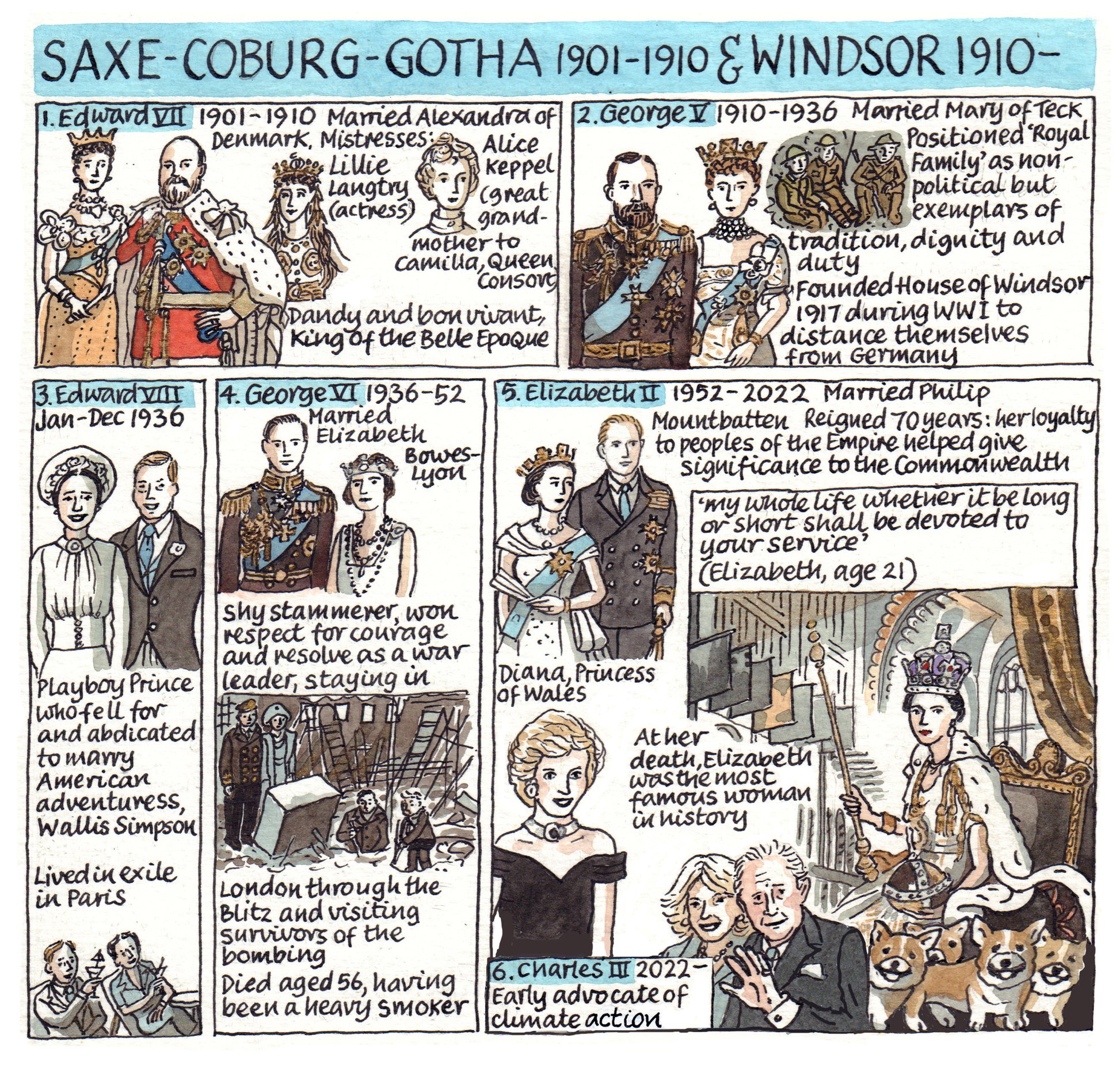 From Edward VII to Charles III, stories and portraits of all the 20th century kings and queens of Britain.